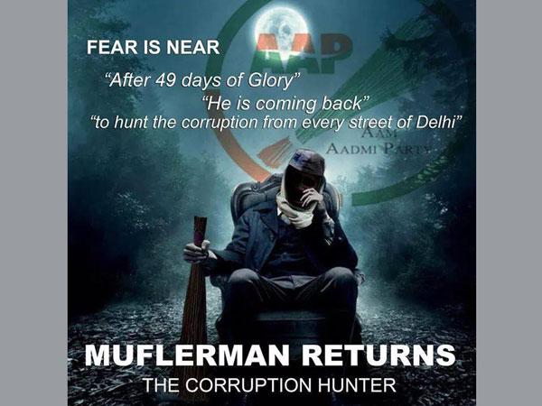 નવી દિલ્હી, 22 નવેમ્બર: દિલ્હી ફરી એકવાર ચૂંટણીના રંગમાં રંગવા માટે તૈયાર છે, એટલા માટે રાજ્યની ત્રણ મોટી પાર્ટીઓએ કમરકસી લીધી છે પરંતુ હંમેશાની માફક આપ પાર્ટી ફરીથી પોતાના અલગ પ્રકારના ચૂંટણી પ્રચારને લઇને ચર્ચામાં છે. ટ્વિટર અને ફેસબુક પર ખૂબ વધુ એક્ટિવ રહેનાર આપ પાર્ટી દ્વારા આજકાલ એક પોસ્ટર ઇન્ટરનેટ પર ઝડપથી વાયરલ કરવામાં આવી રહ્યો છે જેના પર અંગ્રેજીમાં લખેલું છે 'મફલરમેન-રિટર્ન્સ'.