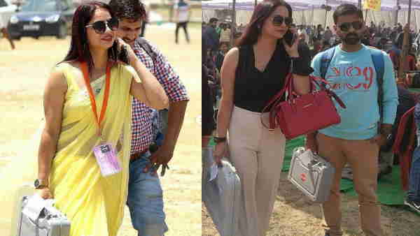 પોલિંગ પાર્ટી સાથે રવાના થતા પહેલા રીના દ્વિવેદીના ફોટા સામે આવ્યા છે. જેમાં તેનો લુક ઘણો બદલાયેલો જોવા મળી રહ્યો છે. સોશિયલ મીડિયા પર રીના દ્વિવેદીના જે ફોટા સામે આવ્યા છે તેમાં એ ઘણા સ્ટાઈલિશ દેખાઈ રહી છે. વાસ્તવમાં, રીનાએ કાલા ચશ્મા, બ્લેક સ્લીવલેસ ટૉપ અને ઑફ વ્હાઈટ પેન્ટ પહેર્યુ હતુ. રીના દ્વિવેદીને નવા ગેટ અપમાં જોયા બદા ત્યાં ઘણી ભીડ એકઠી થઈ ગઈ. લોકો સાથે પોલિસકર્મી પણ તેમની સાથે સેલ્ફી લેતા જોવા મળ્યા.