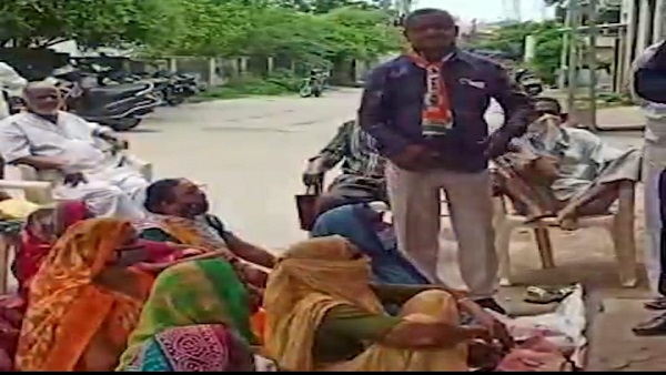 જામનગર જીલ્લાના કાલાવાડમાં આવેલ વિકાસ કોલોનીમાંરૂપાણી સરકારના 5 વર્ષ પૂર્ણ થતા બીજેપી દ્વારા ઉજવણીના ભાગ રૂપે મફત અન્ન વિતરણ કરવામાં આવી રહ્યું છે. કાલાવાડ શહેર કોંગ્રેસ પ્રમુખ સંજય સિંહ જાડેજાની આગેવાનીમાં વિરોધ પક્ષના નેતા ઇમરાન દિલાવર ઓડીયા, સંદીપ ખરા વગેરે આગેવાનોને માહિતિ મળી હતી. તેમને માહિતિ મળી હતી કે વિકાસ કોલોનીમાં અન્ન માટે લોકોને સવારના બેસાડી રાખવામાં આવ્યા છે. લોકોને 12 વાગ્યા સુધી અનાજ વિતરણ કરવામાં આવ્યું ન હતુ અને લોકોને બેસાડી રખાયા હતા, આ લોકો પોતાના કામ ધંધો છોડીને અન્ન માટે બેસી રહ્યાં હતા.
