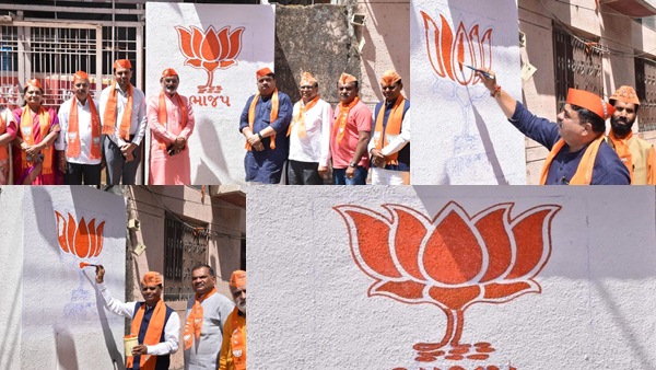 ગુજરાત ભાજપનું ચૂંટણી અભિયાન શરૂ, આગેવાનોએ જાહેર દિવાલો પર કરી વોલ પેઇન્ટિંગ