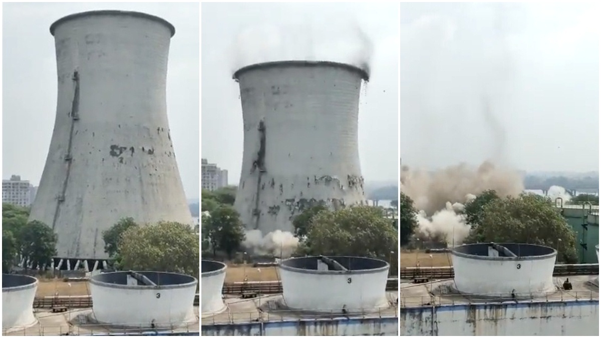 સાત સેકેન્ડમાં જમીનદોસ્ત થયો 85 મીટર લાંબો કુલિંગ ટાવર, જુઓ વીડિયો