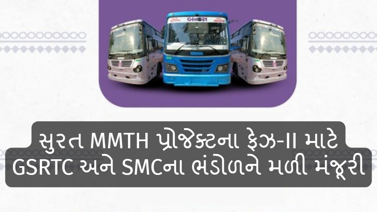 ગુજરાત સરકારે GSRTCની રૂપિયા 183.77 કરોડની દરખાસ્તને મંજૂરી આપી છે. સુરત MMTH પ્રોજેક્ટના તબક્કા-II માટે 183.77 કરોડ (GSRTC અને સુરત મ્યુનિસિપલ કોર્પોરેશનનો હિસ્સો), MoR ની અગાઉની મંજૂરી સાથે સંરેખિત છે. તે નીચે પ્રમાણે GSRTC (34 ટકા) અને SMC (3 ટકા) ની વર્ષ મુજબની જવાબદારી ધારણ કરવા માટે પણ સંમત થયા હતા.