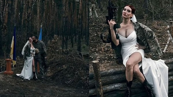 યુક્રેનથી સમાચાર આવ્યા છે કે યુક્રેનની એક સુંદર મહિલા સ્નાઈપરે ફ્રન્ટલાઈન પર સૈનિક સાથે લગ્ન કર્યા છે. બંનેએ ફ્રન્ટલાઈન પર એકબીજા સાથે જીવવાની અને મરવાની પ્રતિજ્ઞા લીધી છે. લગ્ન દરમિયાન જ્યાં યુક્રેનિયન સૈનિક આર્મી યુનિફોર્મમાં જોવા મળ્યો હતો, ત્યાં મહિલા સ્નાઈપર સફેદ ગાઉનમાં જોવા મળી હતી. મહિલા સ્નાઈપરે પોતાના લગ્નની તસવીરો ઈન્સ્ટાગ્રામ પર શેર કરી છે.
