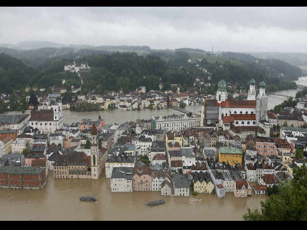 જર્મનીના પસાઉમાં આવેલા ભયંકર પૂરના કારણે જનજીવન અસ્તવ્યસ્ત થઇ ગયું છે. પૂરગ્રસ્ત એક ક્ષેત્રમાં પોતાના ઘરની બારીમાંથી બહાર જોઇ રહેલી એક મહિલા, કહેવામા આવે છે કે, ત્રણ નદીઓમાં પાણીનું પ્રમાણ વધવાના કારણે આ પૂર આવ્યું છે.