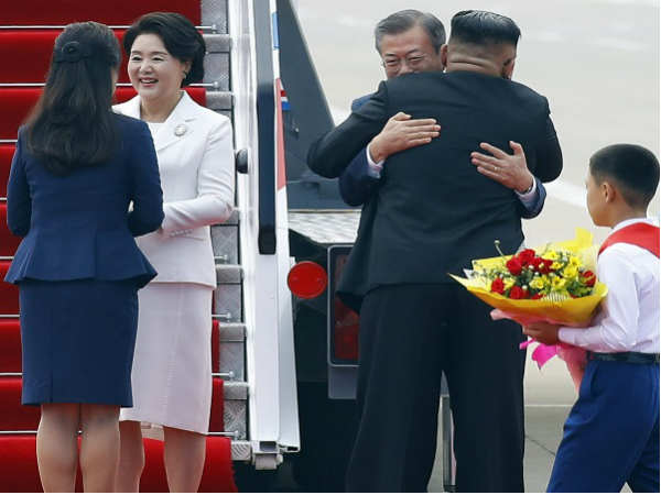 સિંગાપોર સમિટ બાદ હવે કોરિયાઈ દ્વીપકલ્પમાં ઘણુ બધુ બદલાઈ ગયુ છે. ત્રણ દિવસના પ્રવાસ માટે પ્યોંગયાંગ એરપોર્ટ પહોંચતા જ કિમે સાઉથ કોરિયાઈ રાષ્ટ્રપતિને ગળે લગાવ્યા.