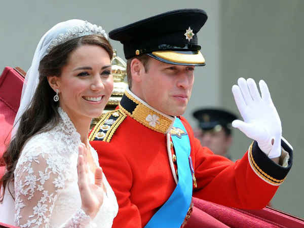 Kate and William wave at their 2011 wedding