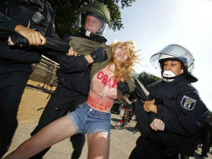 બર્લિનમાં ઓબામાના ભાષણ પહેલા મહિલાઓનું ટોપલેસ પ્રદર્શન