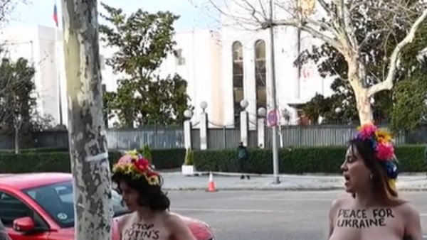 પ્રદર્શનકારી ટૉપલેસ મહિલાઓએ પોતાની ખુલ્લી છાતી પર બૉડી પેઈન્ટની મદદથી 'યુક્રેન માટે શાંતિ' અને 'પુતિનનુ યુદ્ધ બંધ કરો' જેવા સંદેશ લખ્યા હતા. આ સાથે મહિલાઓએ પોતાના હાથમાં ફૂલોના ગુચ્છા પણ લઈ રાખ્યા હતા. યુક્રેન-રશિયા સંકટ પર મહિલાઓનુ આવુ પહેલુ પ્રદર્શન છે, તેમને અન્ય લોકોનુ પણ સમર્થન મળ્યુ. ટૉપલેસ મહિલાઓ આ પ્રદર્શન સ્પેનમાં હાજર રશિયન દૂતાવાસ સામે કરી રહી છે.