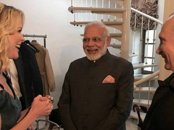 કેલીએ ગુરૂવારે પીએમ મોદી અને રશિયાના રાષ્ટ્રપતિ પુતિન સાથે સેન્ટ પીટર્સબર્ગના કોન્સટૈંટિન પેલેસમાં વાતચીત કરી હતી અને સાથે જ પોતાનો નવો શો લૉન્ચ કર્યો હતો. પોતાના શોની વાતચીત શરૂ કરતાં પહેલાં કેલીએ બંન્ને નેતાઓનું સ્વાગત કર્યું અને તેમની સાથ હાથ મિલાવ્યો. પીએમ મોદીએ કેલીનું અભિવાદન કરતાં કહ્યું, મેં તમારું ટ્વીટ જોયું, જેમાં તમે છત્રી પકડીને ઊભા છો. આની પર જવાબ આપતાં કેલીએ કહ્યું, ખરેખર, તમે મારું ટ્વીટ જોયું? શું તમે ટ્વીટર પર છો? કેલીએ કરેલ પ્રશ્ન સાંભળી પીએમ મોદી અને પુતિન હસી પડ્યા તથા પીએમ મોદીએ હસીને આ સવાલનો જવાબ આપ્યો.
