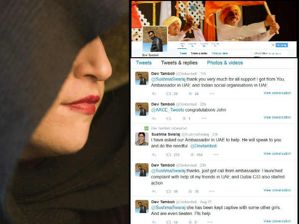 શનિવારના રોજ દેવ તંબોલી નામના વ્યક્તિએ ટ્વિટરના માધ્યમથી સુષમા સ્વરાજે મદદ માંગતા જણાવ્યું, 'મારી બહેન 14 ઓગસ્ટના રોજ યૂએઇ નોકરી કરવા ગઇ હતી, જ્યા તેને કોઇએ ઓરડામાં બંધક બનાવી લીધી છે. સુષમા સ્વરાજજી કૃપા કરીને મારો સંપર્ક કરો અને મારી મદદ કરો.'