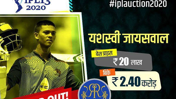 આઇપીએલ 2020 નીલામીમાં ઓસ્ટ્રેલિયાના ખેલાડીઓના દબદબા વચ્ચે હરાજીમાં ભારતના ખેલાડીઓમાં એક નામ 17 વર્ષિય યશસ્વી જયસ્વાલનું છે, જે એક સમયે મુંબઈમાં પાણી પુરી વેચીને જીવન ગુજારતો હતો. તેને રાજસ્થાન રોયલ્સે 2 કરોડ 40 લાખમાં ખરીદ્યો હતો. જયસ્વાલ તાજેતરમાં ફર્સ્ટ ક્લાસ ક્રિકેટમાં ડબલ સદી ફટકારનાર સૌથી યુવા બેટ્સમેન બન્યો છે. તેણે મુંબઈ તરફથી વિજય હઝારે ટ્રોફીમાં બેવડી સદી ફટકારી હતી અને છ મેચમાં 25 છગ્ગા પણ લગાવ્યા હતા. જયસ્વાલનું નામ આ હરાજી બાદ ફરી એકવાર ક્રિકેટ બોર્ડમાં સનસનાટીભર્યા બન્યું છે.
