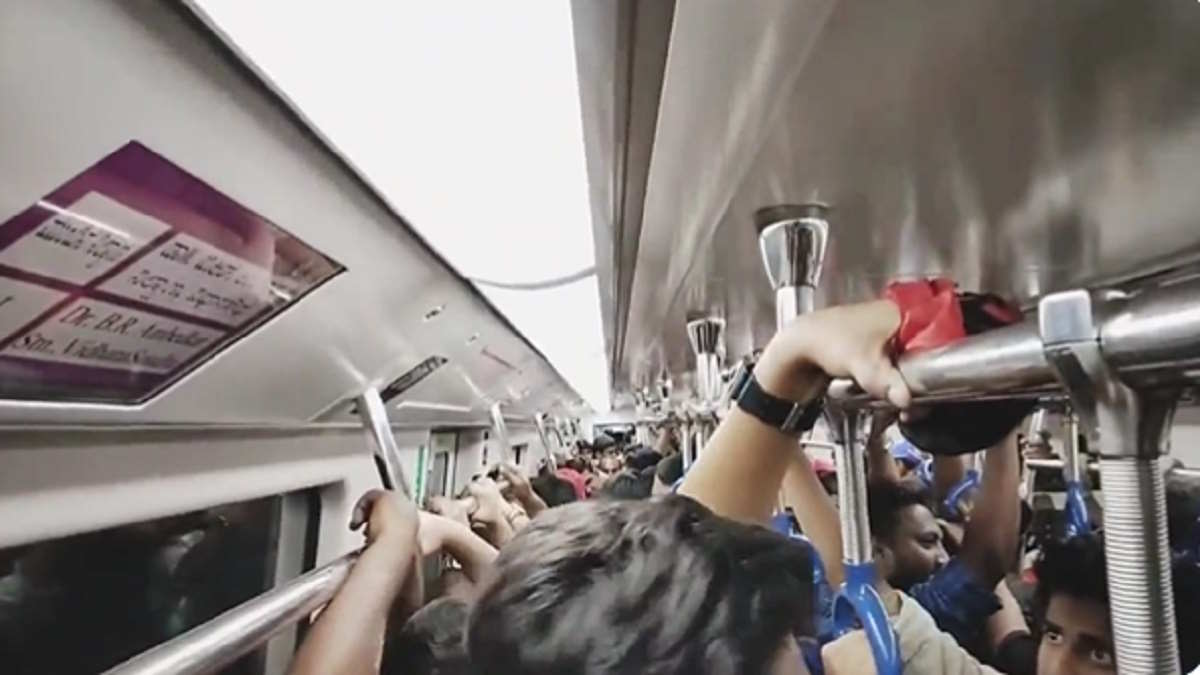 રોયલ ચેલેન્જર્સ બેંગ્લોરે રવિવારે પાંચ વખતની ચેમ્પિયન મુંબઈ ઈન્ડિયન્સને આઠ વિકેટે હરાવી દીધું. આ જીત બાદ માત્ર RCB કેમ્પમાં જ ખુશીની લહેર નથી, પરંતુ ટીમના ચાહકો પણ પોતાની ફેવરિટ ક્રિકેટ ટીમની મુંબઈ ઈન્ડિયન્સ સામેની જીત બાદ ક્લાઉડ નવમાં છે. વાયરલ થયેલા વીડિયોમાં, ચાહકો વ્યસ્ત મેટ્રો ટ્રેનની અંદર RCB માટે ચીયર કરતા જોઈ શકાય છે, જેનો વીડિયો હવે સોશિયલ મીડિયા પર વાયરલ થઈ રહ્યો છે.