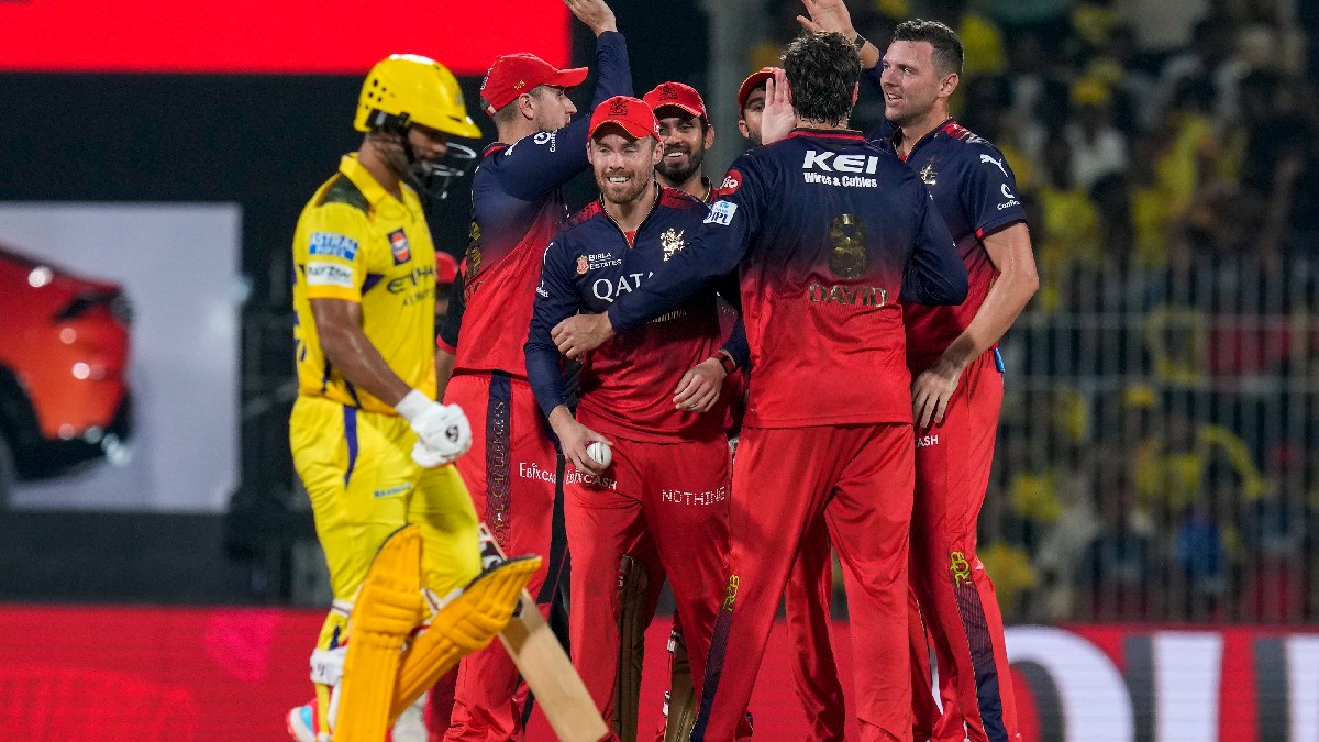 રોયલ ચેલેન્જર્સ બેંગ્લોર તરફથી જોશ હેઝલવુડે શાનદાર બોલિંગ કરી હતી. તેણે પોતાની પહેલી જ ઓવરમાં રાહુલ ત્રિપાઠી અને રુતુરાજ ગાયકવાડને આઉટ કરીને CSKની કમર તોડી નાખી.