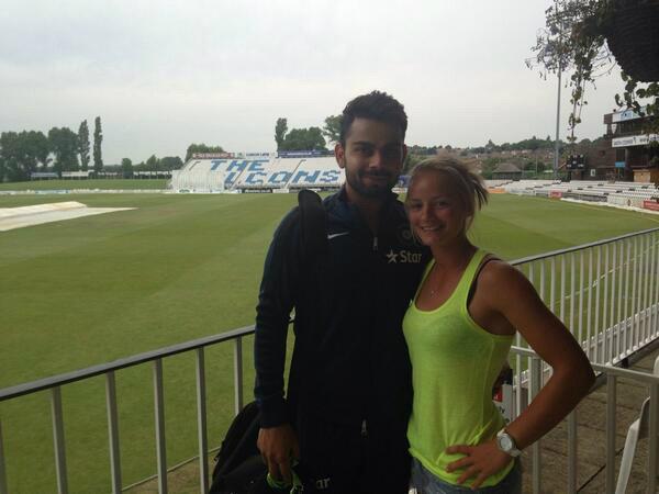 તાજેતરમાં જ બન્ને ખેલાડીઓની મુલાકાત ઇંગ્લેન્ડ ટૂર પર થઇ, ટીમ ઇન્ડિયાનો હાલના સમયનો સૌથી ગ્લેમરસ ક્રિકેટર વિરાટ કહોલીએ ડર્બીશાયરથી મેચ દરમિયાન ઇંગ્લેન્ડ ટીમની આ સુપરસ્ટાર સાથેની મુલાકાત તરફથી તસવીર પણ પડાવી હતી. વેટના ભાઇ મેક્સ વેટે આ તસવીર ક્લિક કરી અને પછી પોતાના ટ્વીટર એકાઉન્ટ પર પોસ્ટ કરવામાં આવી. મેક્સે એ ફોટોના કેપ્શનમાં લખ્યુ છેકે, 'ધીસ વુડ મેક એ ક્યૂટ કપલ....હાહાહા.' ત્યારબાદ ટ્વીટર પર આ તસવીરોને લોકો રીટ્વીટ કરવામાં લાગ્યા છે.
