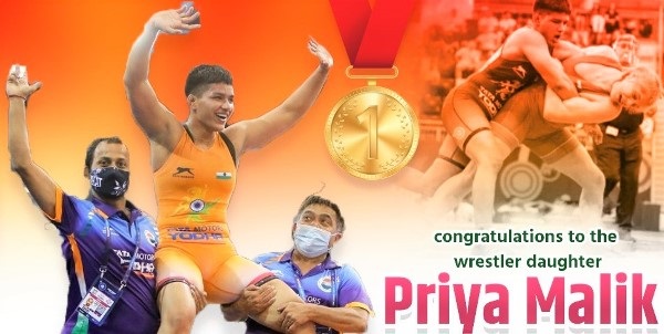 World Wrestling Championship 2021 : પ્રિયા મલિકે જીત્યો વર્લ્ડ રેસલિંગ ચેમ્પિયનશિપમાં ગોલ્ડ મેડલ