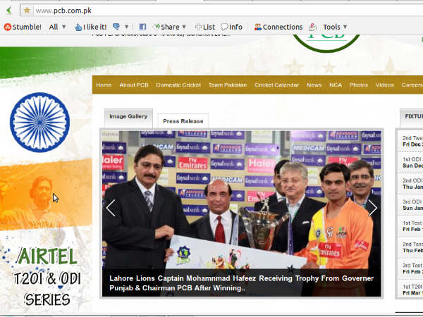 પાકિસ્તાન ક્રિકેટ બોર્ડની સાઇટ પર ત્રિરંગાનું અપમાન