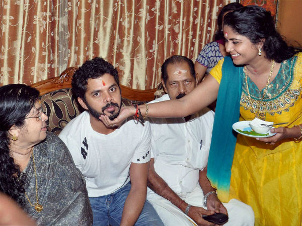 જામીન પર છૂટ્યા બાદ શ્રીસંતે પોતાના માતા-પિતા સાથે અમુક સમય ગાળ્યો હતો. તેના ચહેરા પર થાક અને ઘરે પરત ફર્યાની ખુશી જણાઇ રહી હતી.