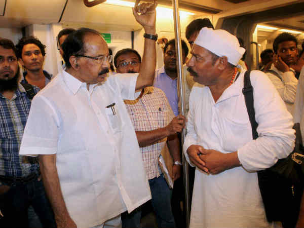 પેટ્રોલિયમ મંત્રી એમ વીરપ્પા મોઇલી નવી દિલ્હીમાં ઓફીસ જવા માટે રેસકોર્સ મેટ્રો સ્ટેશને પહોંચ્યા હતા અને ત્યાંથી ટ્રેન પકડી હતી.